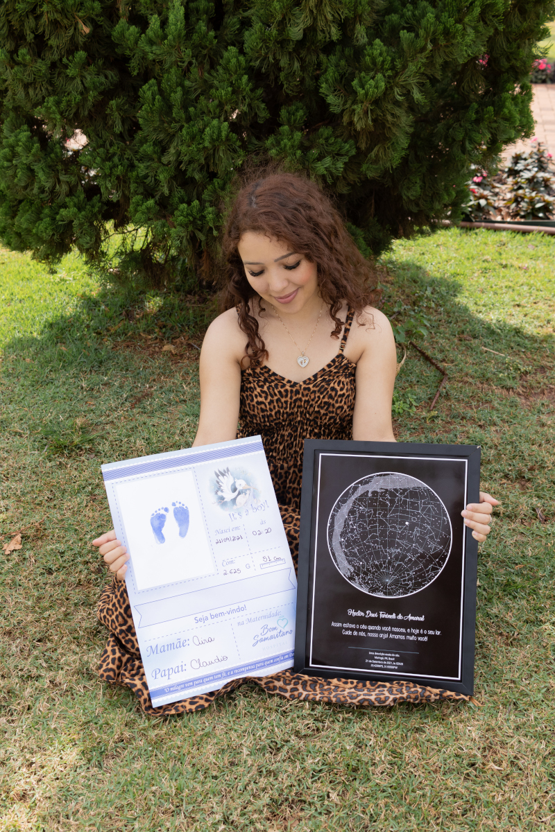 “Parece estranho, mas foram exatos 7 dias de um sonho que vivemos intensamente e se eternizou em nós como o suspirar. Um ventre que não se opôs a cuidar, gerar, nutrir… Mas que precisou se despedir, de um pequeno ser, intensamente tanto quanto o pertencer…”